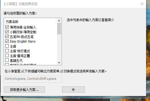 右键小狼毫图标 → 「输入法设定」→ 右下角「获取更多方案」