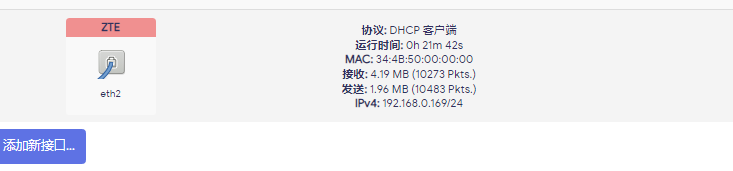 ifconfig -a # 确认新出现的接口(如eth2)我的显示[ 2744.419685] cdc_ether 1-1:1.0 eth2: register 'cdc_ether' at usb-11200000.usb-1, ZTE CDC Ethernet Device, 34:4b:50:00:00:00