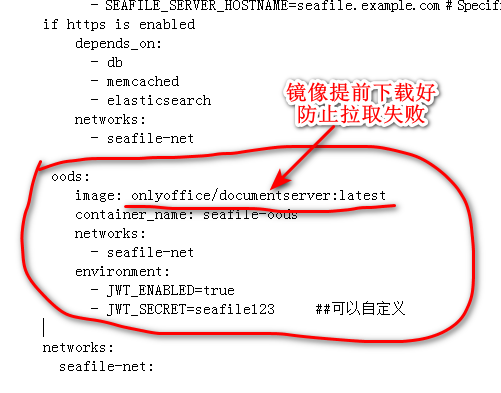 注意:JWT_SECRET 选项配置是安全认证秘钥 ,要和seahub_settings.py中的ONLYOFFICE_JWT_SECRET选项保持一致,内容可自定义填写