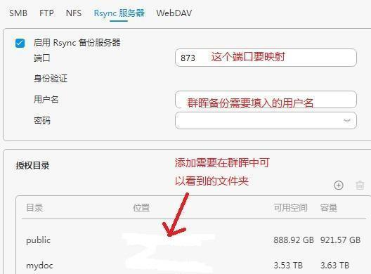 注意服务器类型一定要选择填写Rsync兼容服务器,地址根据自己情况填写,因为我两台nas在一个局域网,所以我填的是局域网IP,端口要填写铁威马里对应的端口号,端口要通过路由器映射。输入铁威马的用户名和密码就可以在“备份模块”里选择铁威马中的文件夹了。接着就可以备份了,如果无法启用备份。如果无法启用,可以把SSH打开试试。